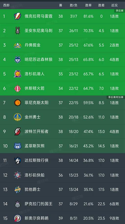 随着森林狼4连胜,独行侠2分憾负,西部最新积分榜出炉!湖人第5