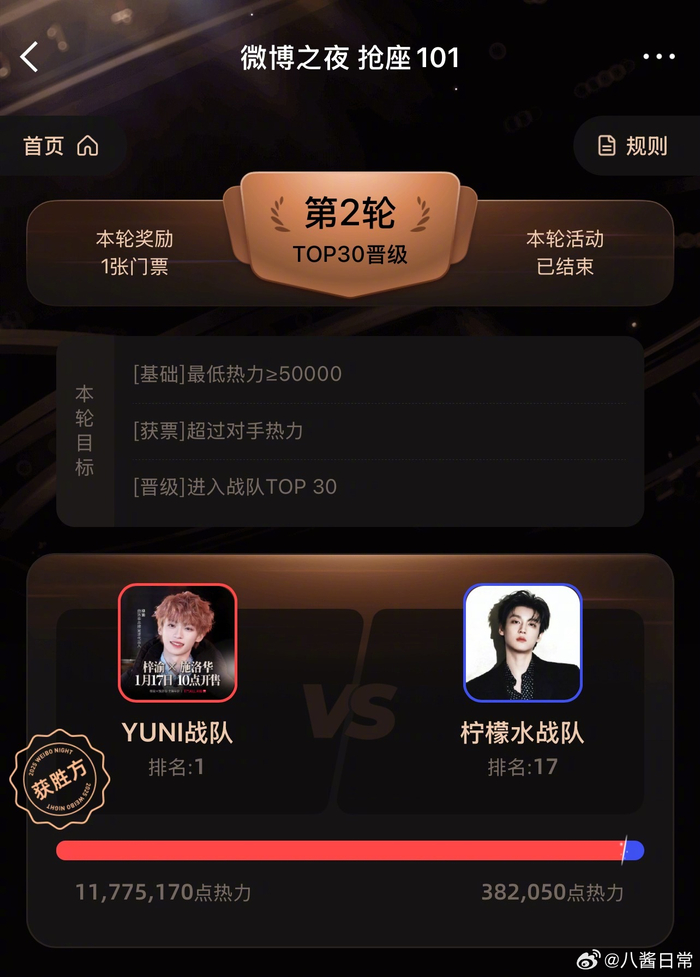 微博之夜抢座PK赛,梓渝家碾压田栩宁家
