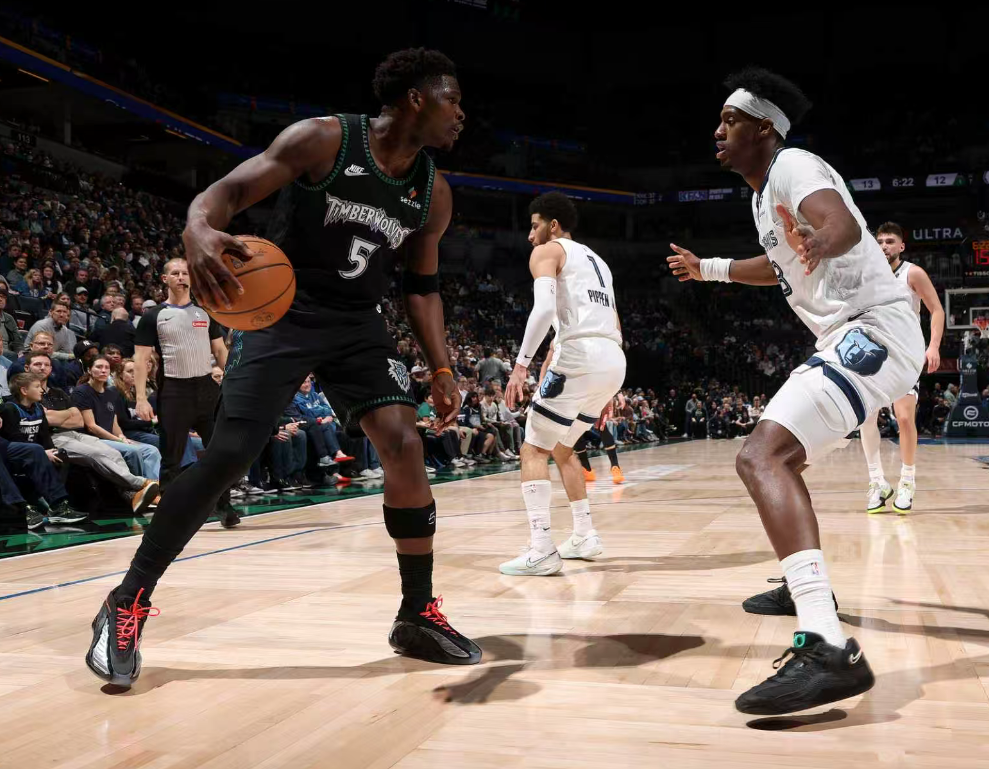 近来森林狼的状态非常神勇,他们先后击败开拓者、快船、掘金,爱德华兹在这三场比赛中则有两场都拿到30+,此役面对灰熊华子的个人发挥也非常出色,首节8中4,三分3中2拿到12分2篮板。