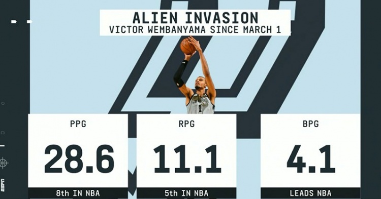 开云体育博彩-毁天灭地!3月以来文班场均4.1帽领跑全联盟 28.6分第8&11.1板第5